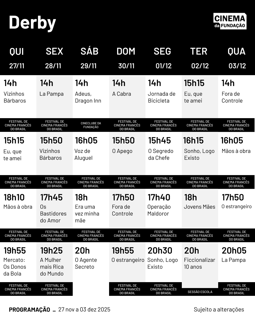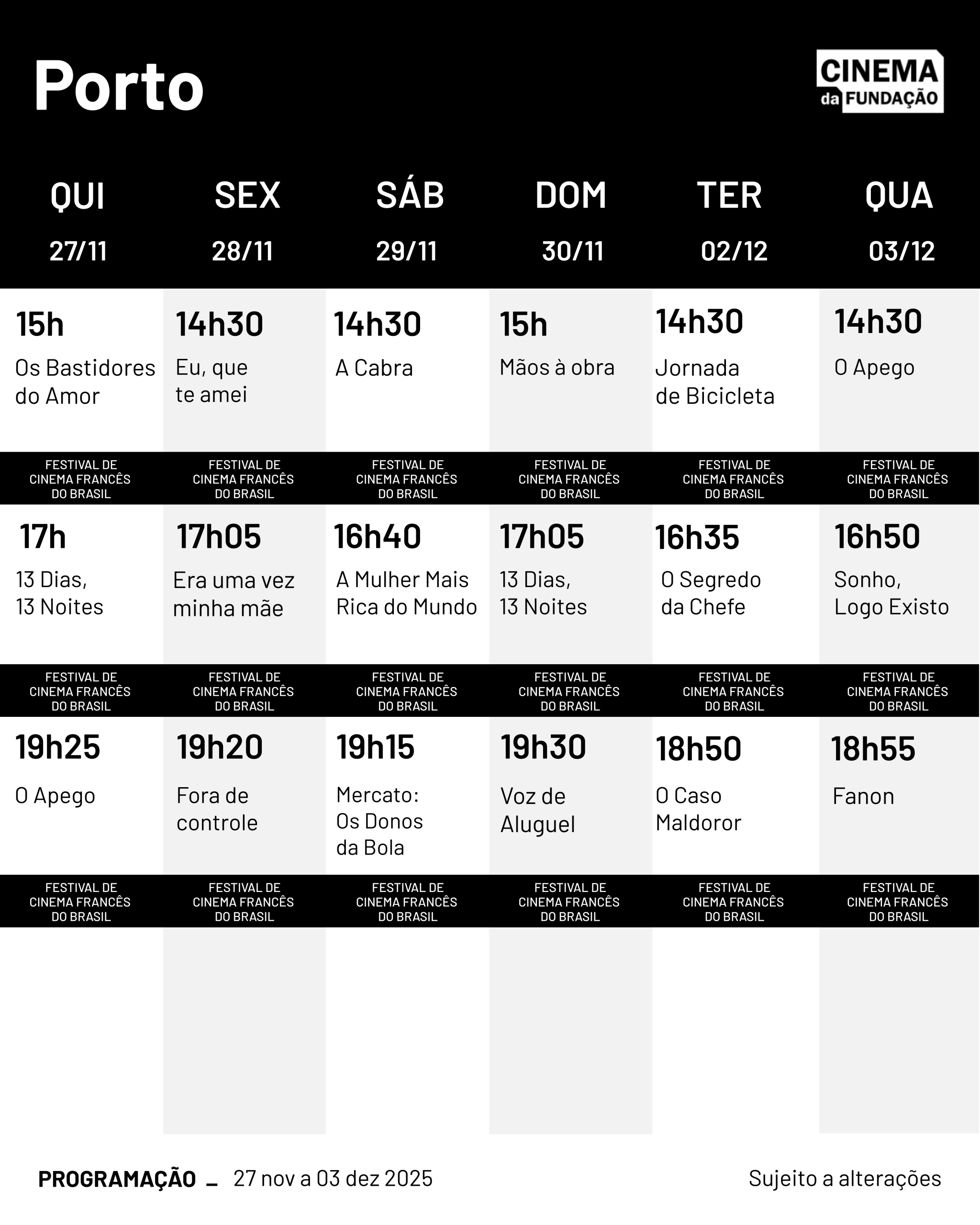 Cineclube da Fundação: gratuito (retirada de ingressos 1h antes das sessões na bilheteria)